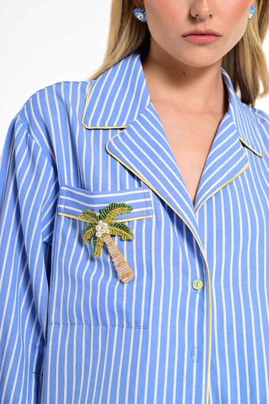 We Coss - Σετ Γαλάζιο Ριγέ Πουκάμισο & Παντελόνα