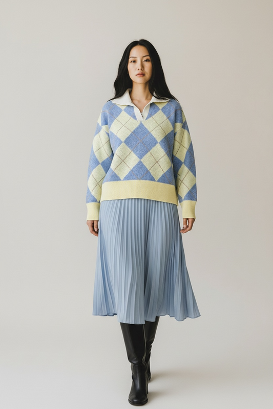 Charizma - Πλεκτό Πουλόβερ Ρόμβοι (Argyle) Κίτρινο- Γαλάζιο