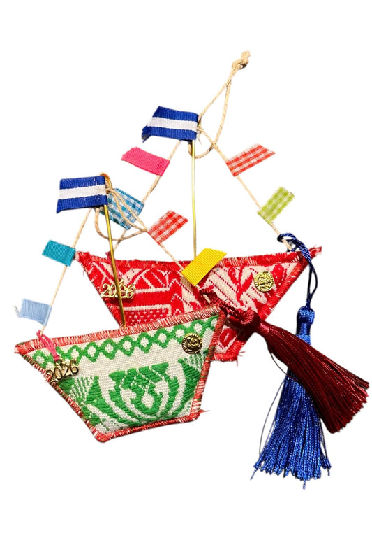Maria Davilla - Χειροποίητο Καραβάκι από Υφαντό Με Σημαιάκια Πρασινο