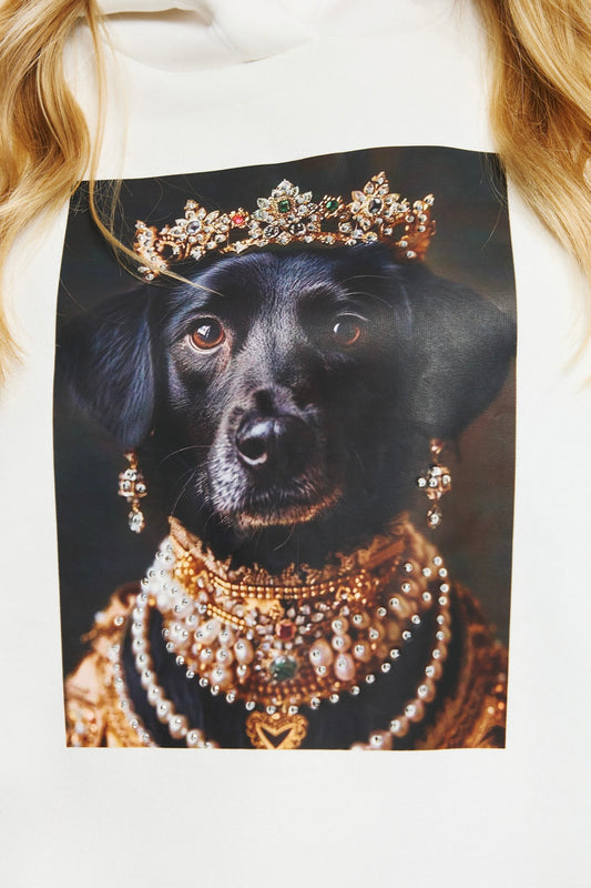 Unitee- Φούτερ Μπλούζα Λευκό με Κουκούλα με Σκύλο με Κορώνα