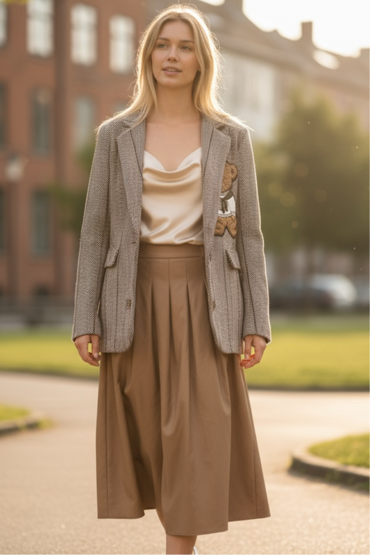 Charizma - Δερματίνη Φούστα με Πιέτες Ανοιχτό Καφέ