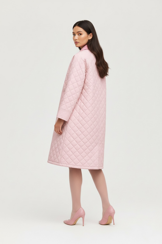 Lumina - Μακρύ Καπιτονέ Παλτό με Κοτλέ Γιακά & Μανίκια Ροζ