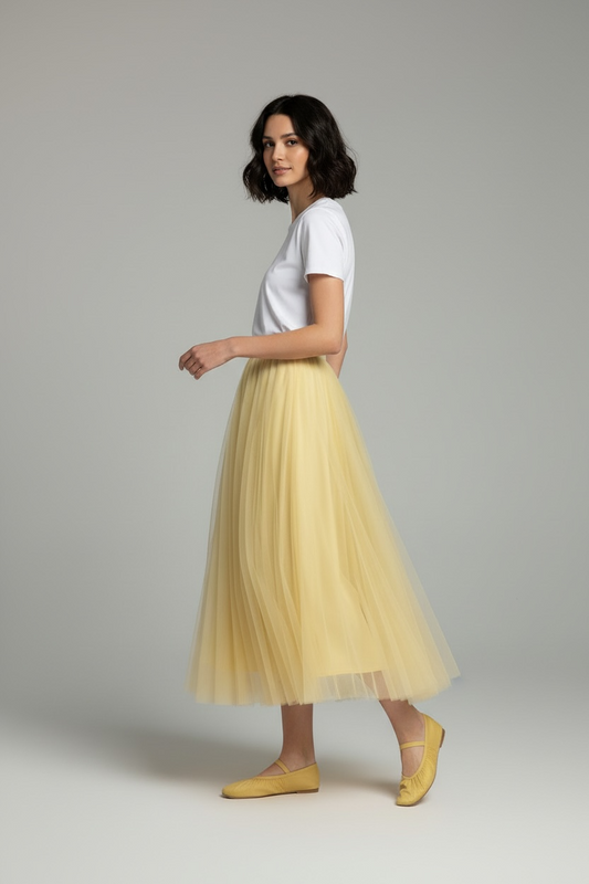 Charizma - Μακριά Φούστα από Τούλι με Ελαστική Μέση & Εσωτερική Φόδρα Κίτρινη