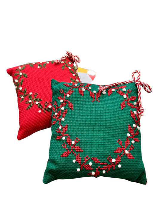 Funny Granny - Xmas Μαξιλάρι Στολίδι Στεφάνι Καρδιά Σταυροβελονιά Μεγάλο