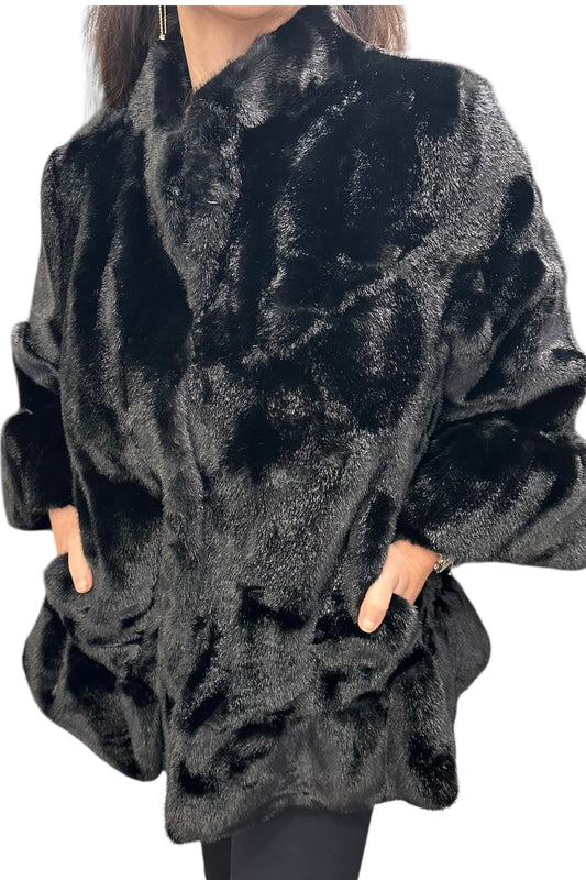 Charizma - Συνθετική Γούνα με Κουκούλα, Τσέπες σε Στυλ Κάπας Μαύρη