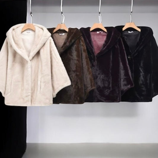 Charizma - Συνθετική Γούνα με Κουκούλα, Τσέπες σε Στυλ Κάπας Μπεζ