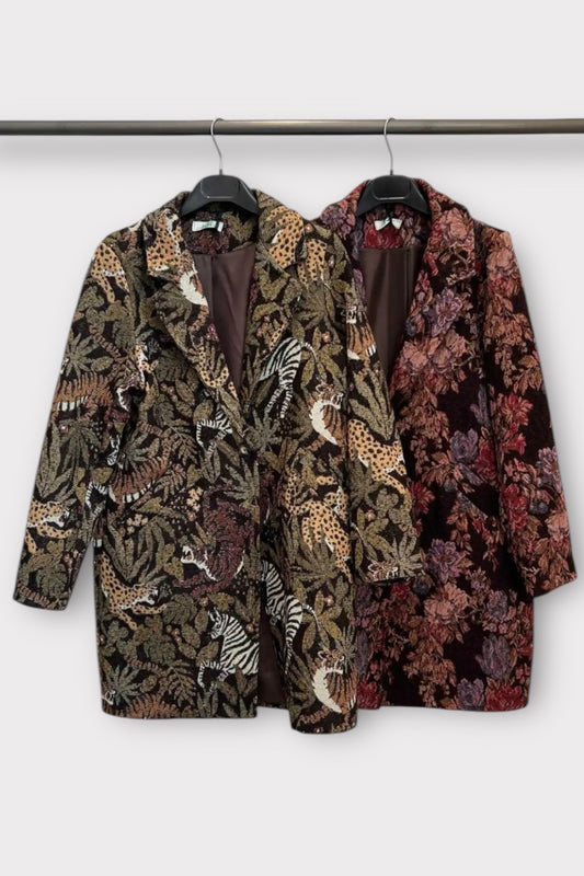 Charizma - Statement Πανωφόρι Μπροκαρ με Ανάγλυφα Μοτίβα & 3/4 Μανίκια Λουλούδια