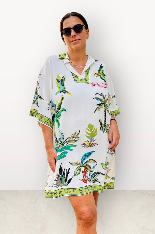 Charizma - Αέρινο Μίνι Φόρεμα με V Λαιμόκοψη και Γιακά Love Summer