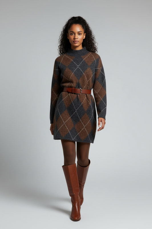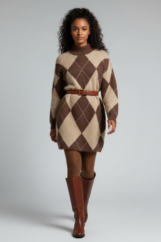 Charizma - Φόρεμα Καρό (Argyle) Μάλλινο Καφέ