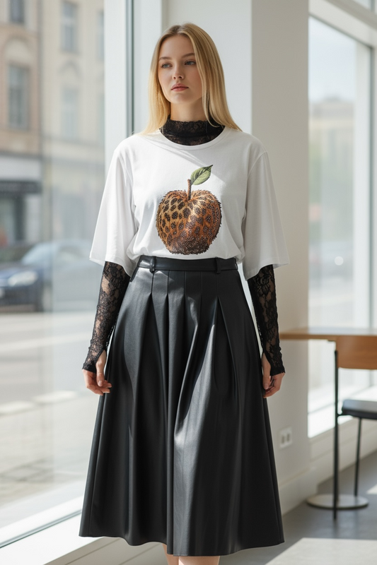 Lumina - Midi Φούστα από Δερματίνη με Πολυεπίπεδα Κρόσσια Μαύρη
