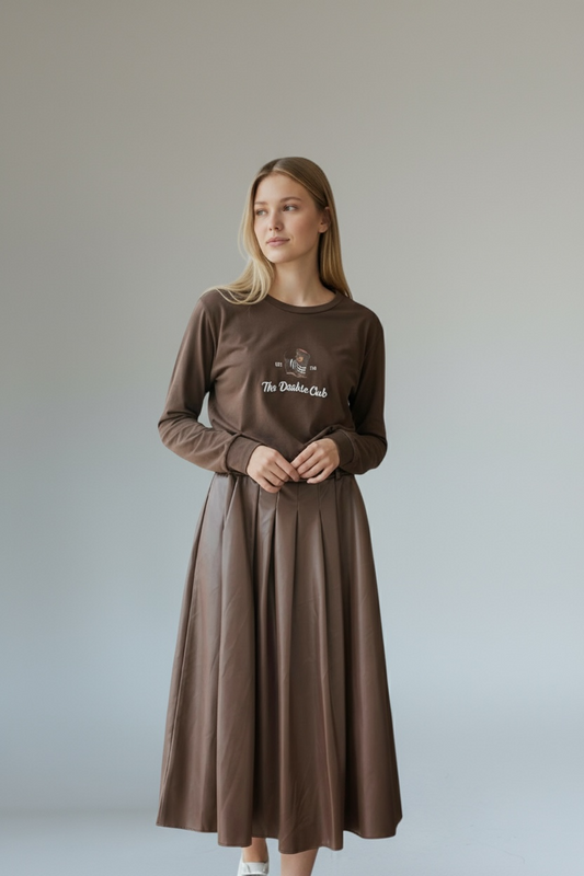 Charizma - Δερματίνη Φούστα με Πιέτες Καφέ