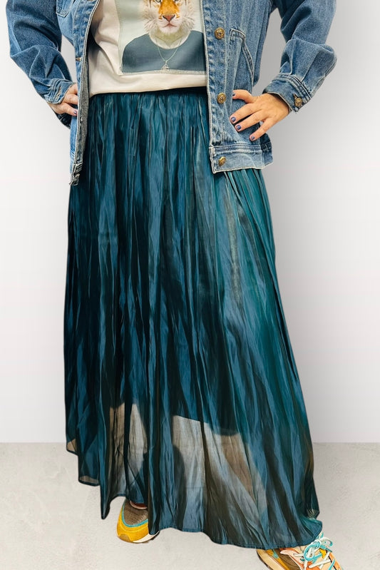 Charizma - Πλισέ Φούστα με Μεταλιζέ Απόχρωση Πράσινο