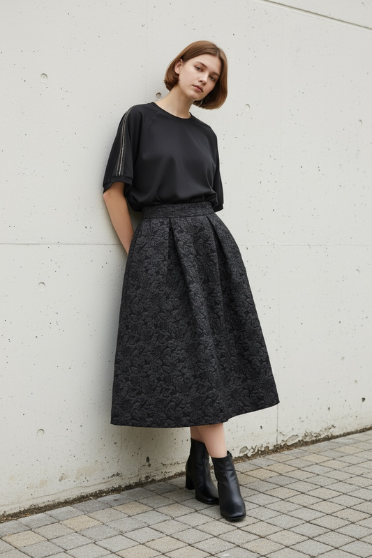 An'ge Galvina - Midi Φούστα με Εφέ Σατέν & Flare Γραμμή Γκρι