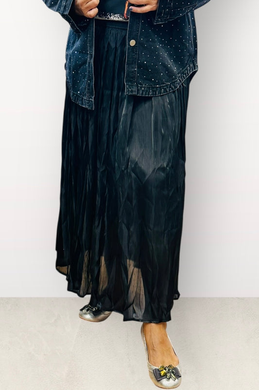 Charizma - Πλισέ Φούστα με Μεταλιζέ Απόχρωση Μαύρη