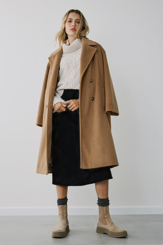An'ge Galvina - Midi Φούστα με Εφέ Σατέν & Flare Γραμμή Καφέ