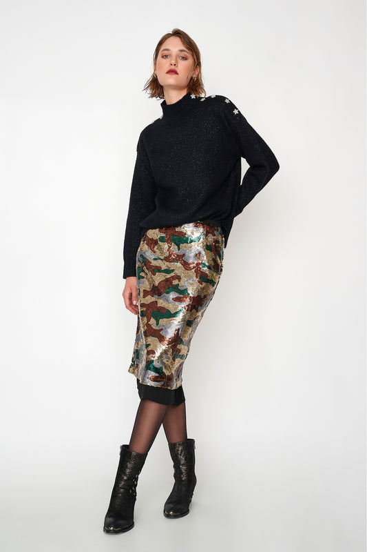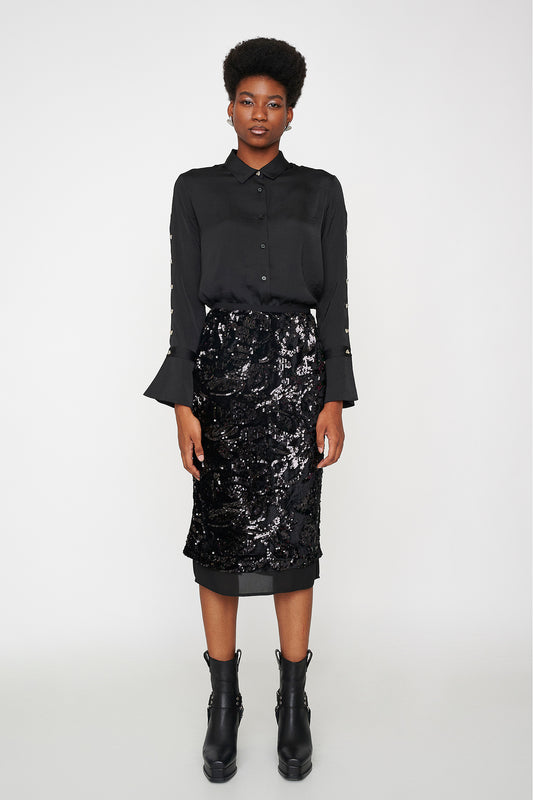 An'ge Juryly -Γυναικεία Φούστα με Πούλιες, Παγιέτες Μαύρη