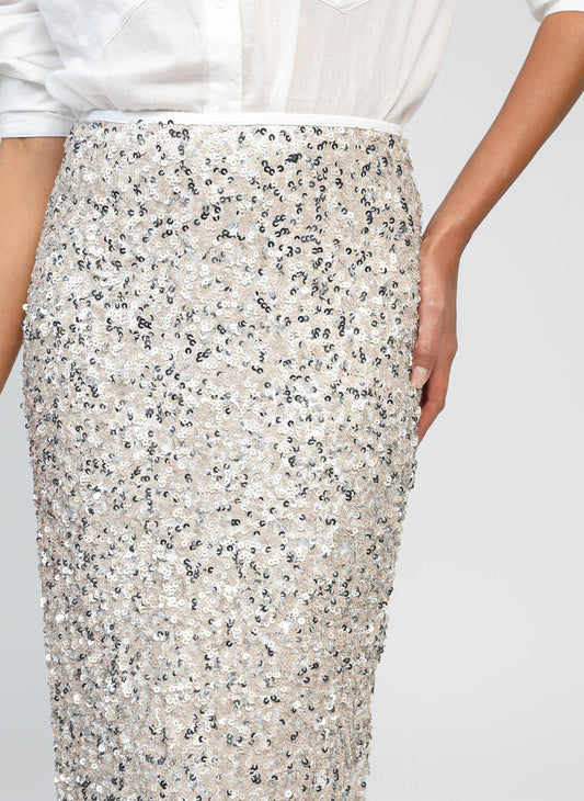 An'ge Juryly -Γυναικεία Φούστα με Πούλιες, Παγιέτες Λευκή