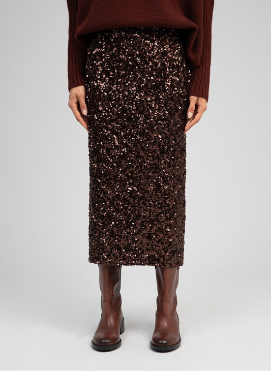 An'ge Juryly -Γυναικεία Φούστα με Πούλιες, Παγιέτες Καφέ