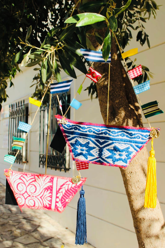 Maria Davilla - Χειροποίητο Μεγάλο Καράβι από Υφαντό Με Σημαιάκια Γαλάζιο