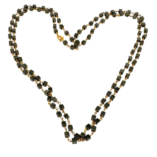 Dora Syrrou - Επίχρυσο Κολιέ Μακρύ Με Αιματίτη Μικρό Κυβάκι