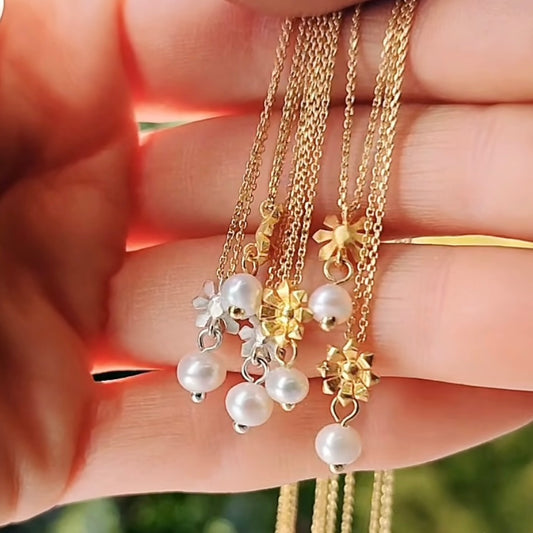 Pavlina Verouki - Flower Mini Ασημένιο Κολιέ Λουλούδι & Μαργαριτάρι Ασημί