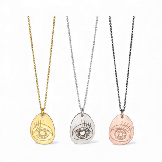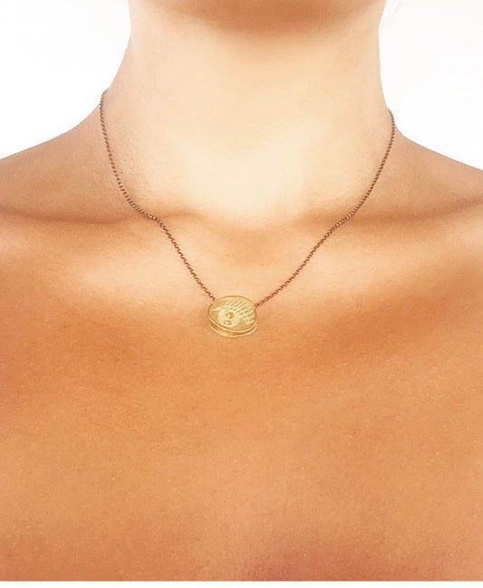 Pavlina Verouki Classic Eyes - Ασημένιο Κολιέ Μικρό Βότσαλο Μάτι Χρυσό