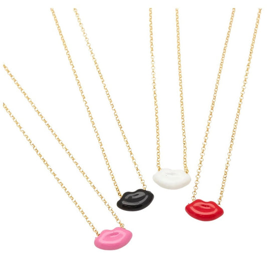 White in Athens - Ασημένιο Κολιέ Lips Σμάλτο Κόκκινο