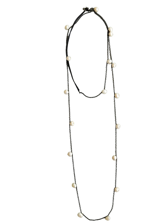 Antigone Koukos - Κολιέ 925 Ασήμι Επιροδιωμένο Με Μαργαριτάρια