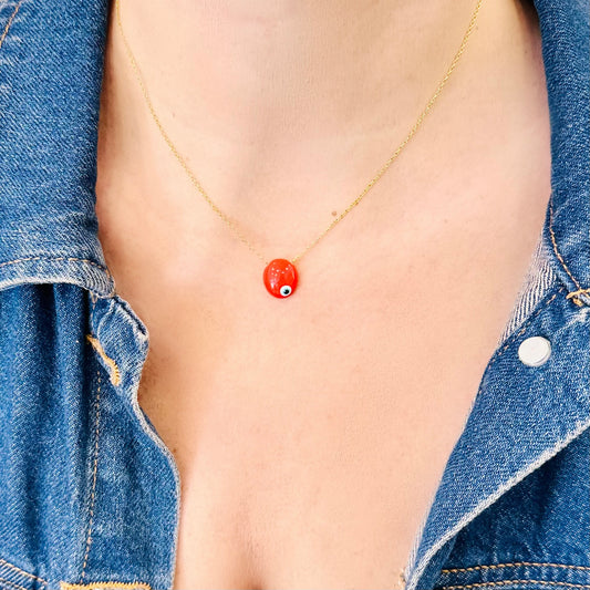 White In Athens - Ασημένιο Κολιέ Big Votsalo-Eye- Σμάλτο Κοραλλί