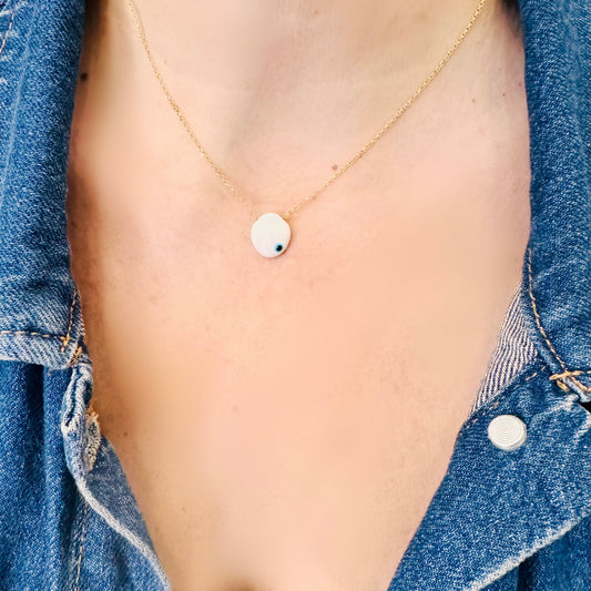 White In Athens - Ασημένιο Κολιέ Big Votsalo-Eye- Σμάλτο Άσπρο