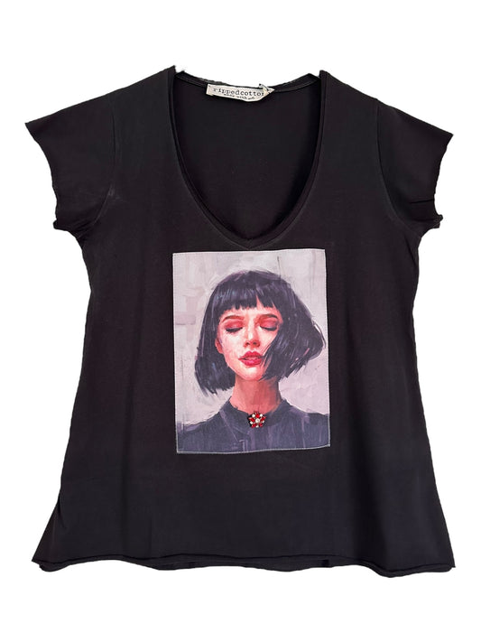 Ripped cotton T-shirt Μαύρο Βαμβακερό Με Εξώραφη Στάμπα Sweet Sofi