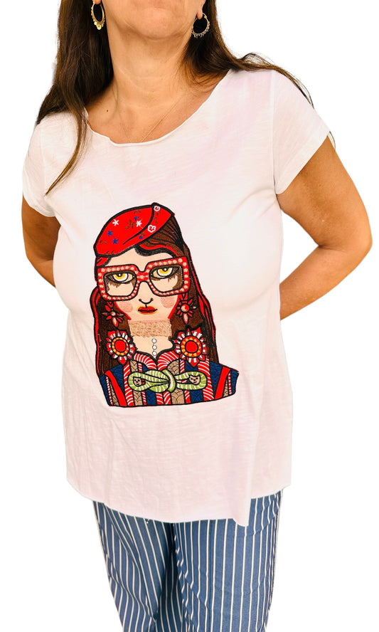 Anlyta - Μπλούζα με κοντό μανίκι Και Λαιμόκοψη Με Κέντημα