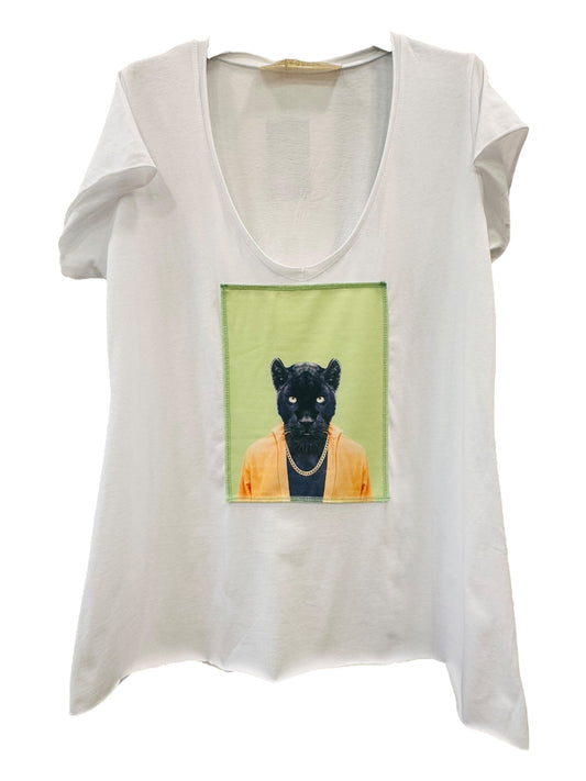 Ripped cotton T-shirt Λευκό Βαμβακερό Με Εξώραφη Στάμπα Mr Jaguar