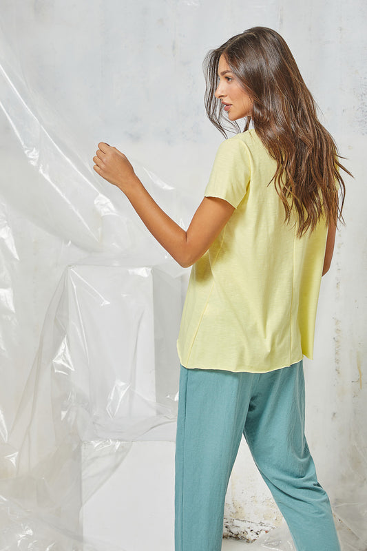 Naiba - Μπλούζα με κοντό μανίκι V oversized κίτρινο