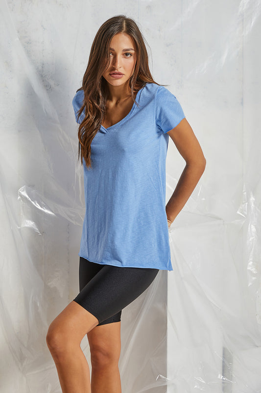 Naiba - Μπλούζα με κοντό μανίκι V γαλάζιο