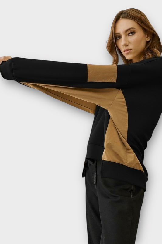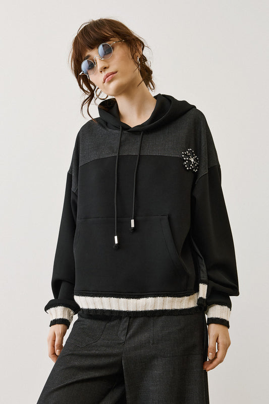 Figaro - Μπλούζα Φούτερ με Διχρωμία & Λεπτομέρεια Τσέπης στο Μανίκι Μαύρο