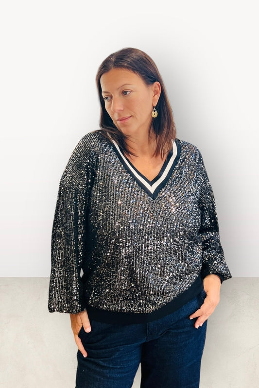 Figaro - Μπλούζα με Παγιέτες & V-Λαιμόκοψη