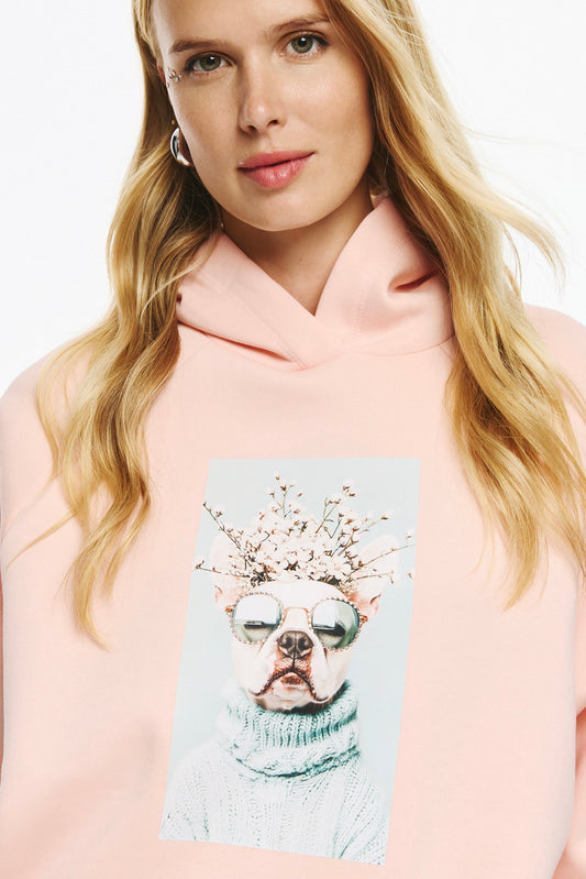 Unitee- Φούτερ Μπλούζα Ροζ με Κουκούλα με Γαλλικό Μπουλντόγκ