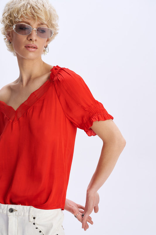 Τώρα σε νέα τιμή!C9 Cloud 9 Sonic Revolution - Κόκκινο Τοπ με σατέν υφή και κοντό μανίκι