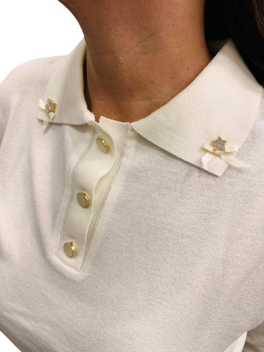 Figaro - Πλεκτή Μπλούζα Πόλο με Αστεράκια & φιόγκους Εκρού