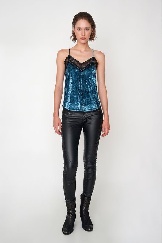C9 Cloud 9 Hudson- Πετρόλ Βελούδινο Καμισόλ με διακοσμητικά μεταλλικά τρουκς