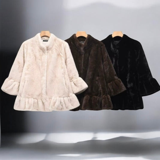 Charizma - Συνθετική Γούνα με Βολάν στα τελειώματα, Τσέπες σε Στυλ Κάπας Μπεζ