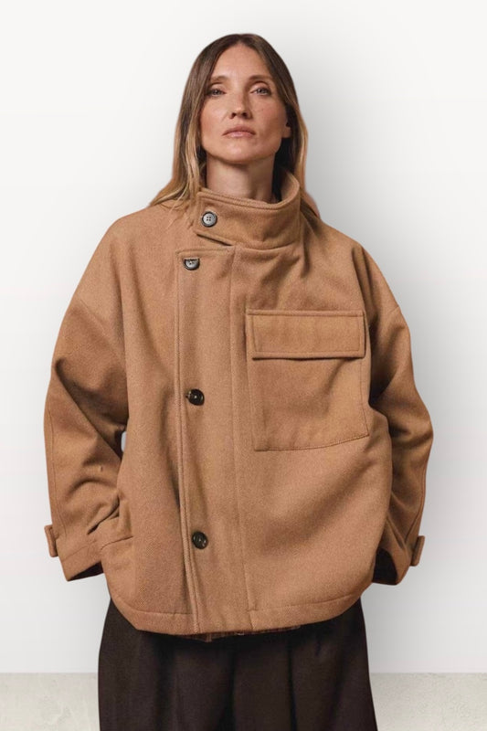 Gioya & Co - Κοντό Παλτό με Ψηλό Γιακά & Πολλαπλές Τσέπες Μόκα