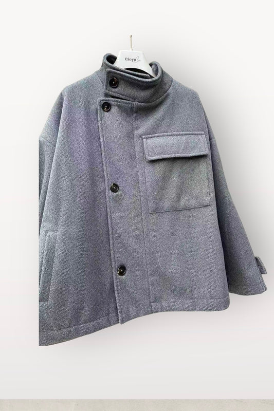 Gioya & Co - Κοντό Παλτό με Ψηλό Γιακά & Πολλαπλές Τσέπες Γκρι