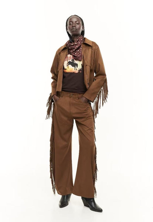 Lumina - Φαρδιά Παντελόνα Cowboy με Κρόσσια & Τσέπες Καφέ