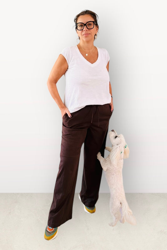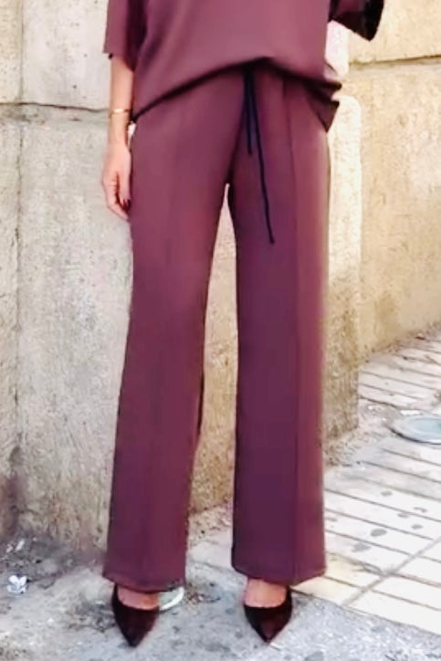 Figaro - Φαρδιά Παντελόνα Καφέ με Λάστιχο & Ρίγα στο Πλάι
