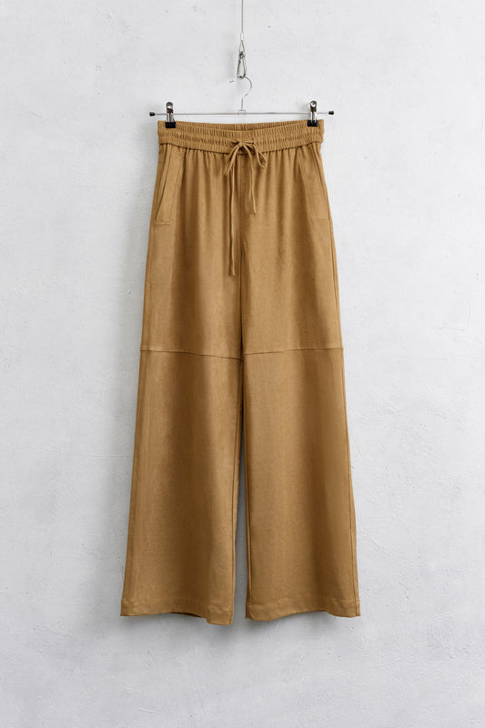 Lumina - Ψηλόμεσο Παντελόνι Τύπου Σουέτ Με Λάστιχο σε Καμηλό Χρώμα