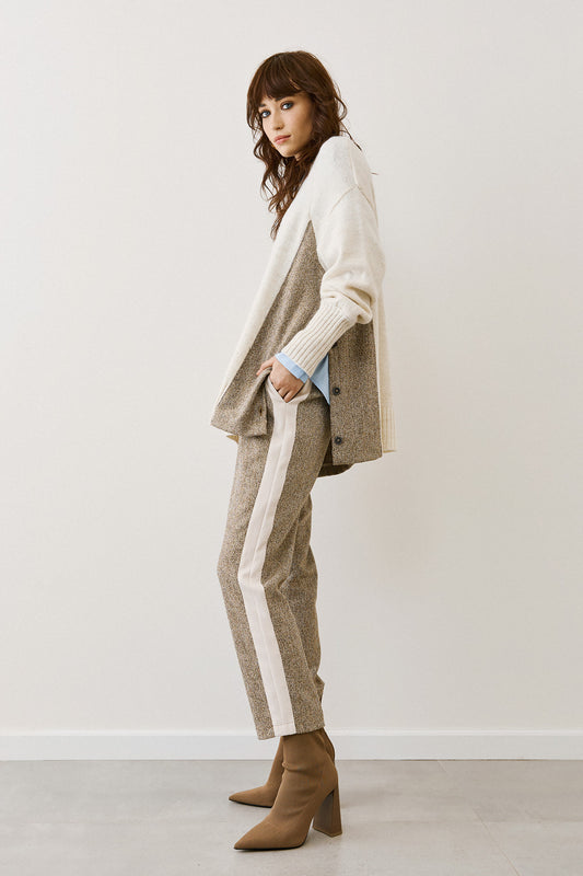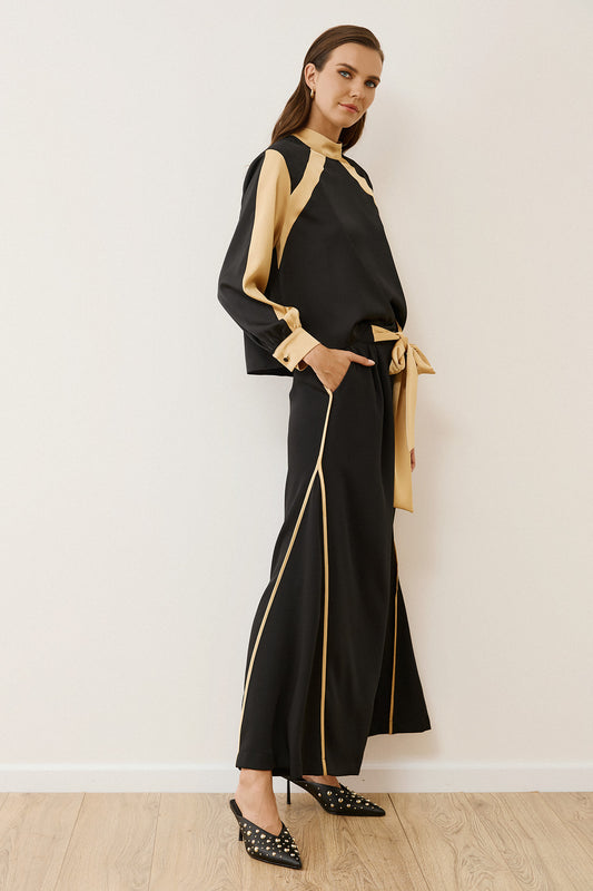 Figaro - Αέρινη Παντελόνα με Διπλή Μπεζ Ρίγα και Ζώνη από το Ίδιο Ύφασμα