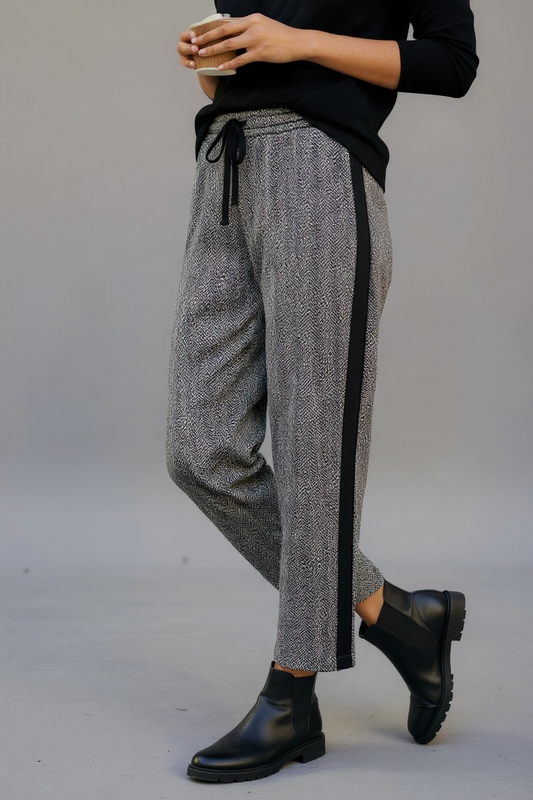 Figaro - Ψηλόμεσο Μαύρο Ψαροκόκαλο Παντελόνι με Ρίγα στο Πλάι και Λάστιχο