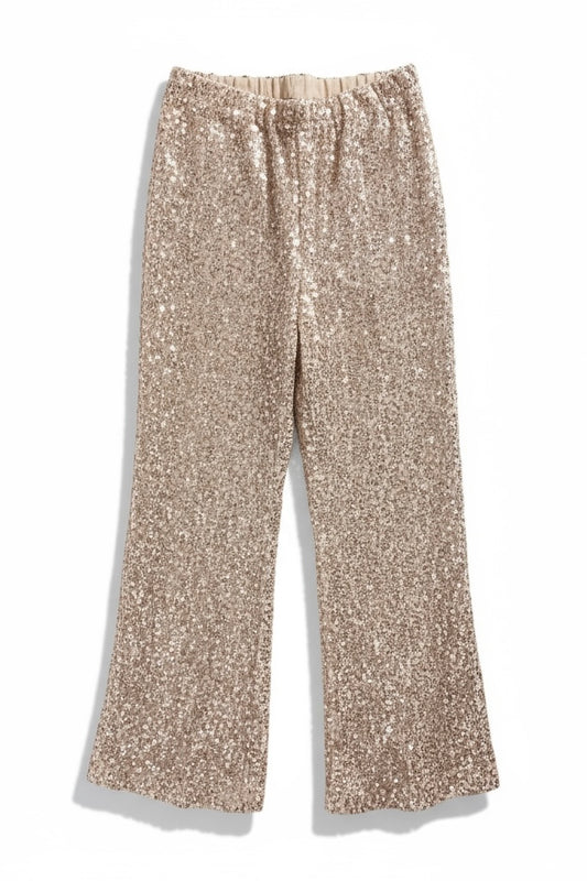 Charizma - Βελούδινη Παντελόνα με Παγιέτες & Ελαστική Μέση Μπεζ